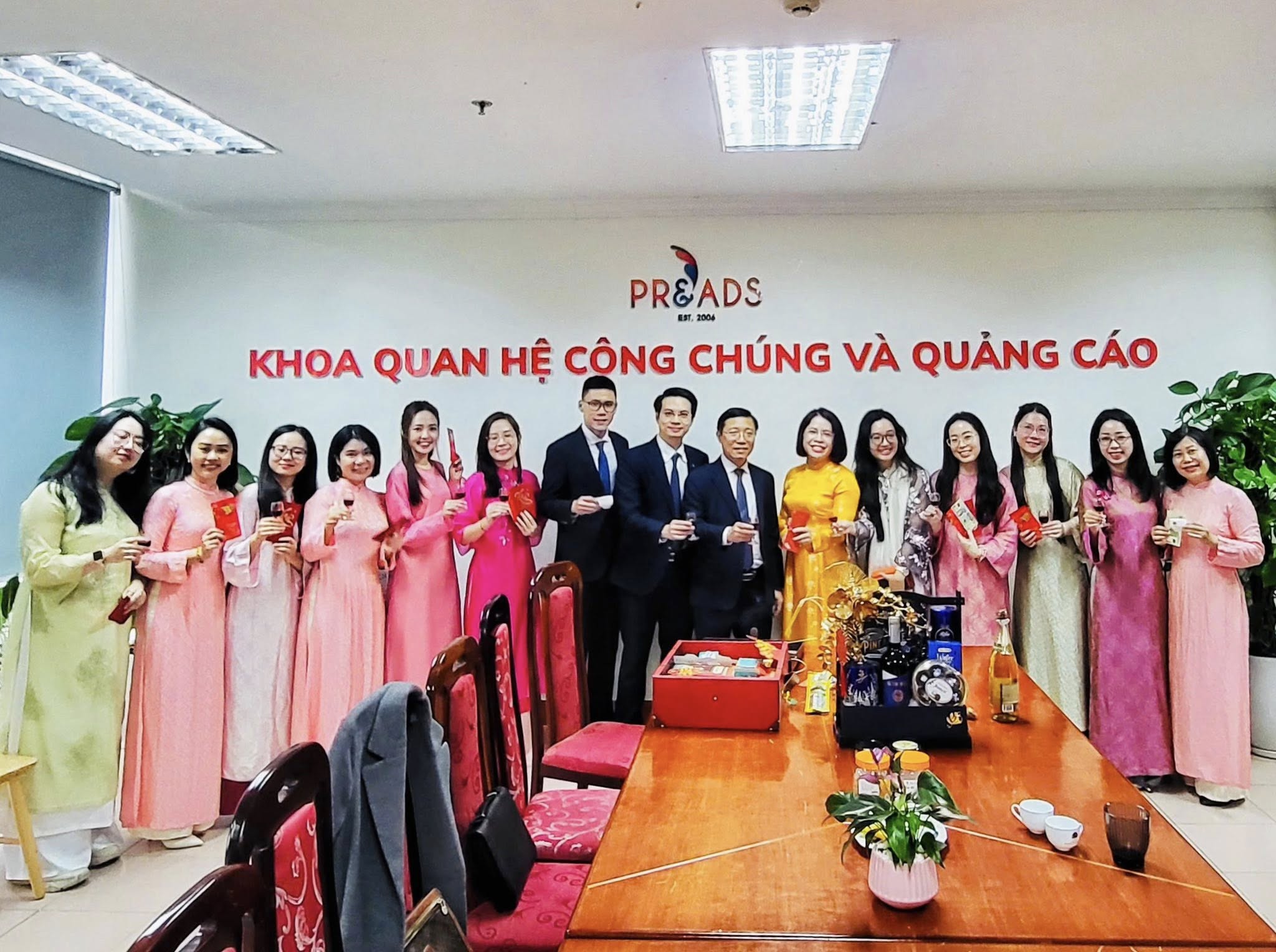 Trong không khí rộn ràng những ngày đầu năm, tập thể thầy cô Khoa Quan hệ công chúng và Quảng cáo – Học viện Báo chí và Tuyên truyền đã cùng nhau gặp mặt khai xuân, gửi tới nhau những lời chúc tốt đẹp và lì xì đầu năm với mong muốn một năm mới nhiều sức khỏe, may mắn và thuận lợi.