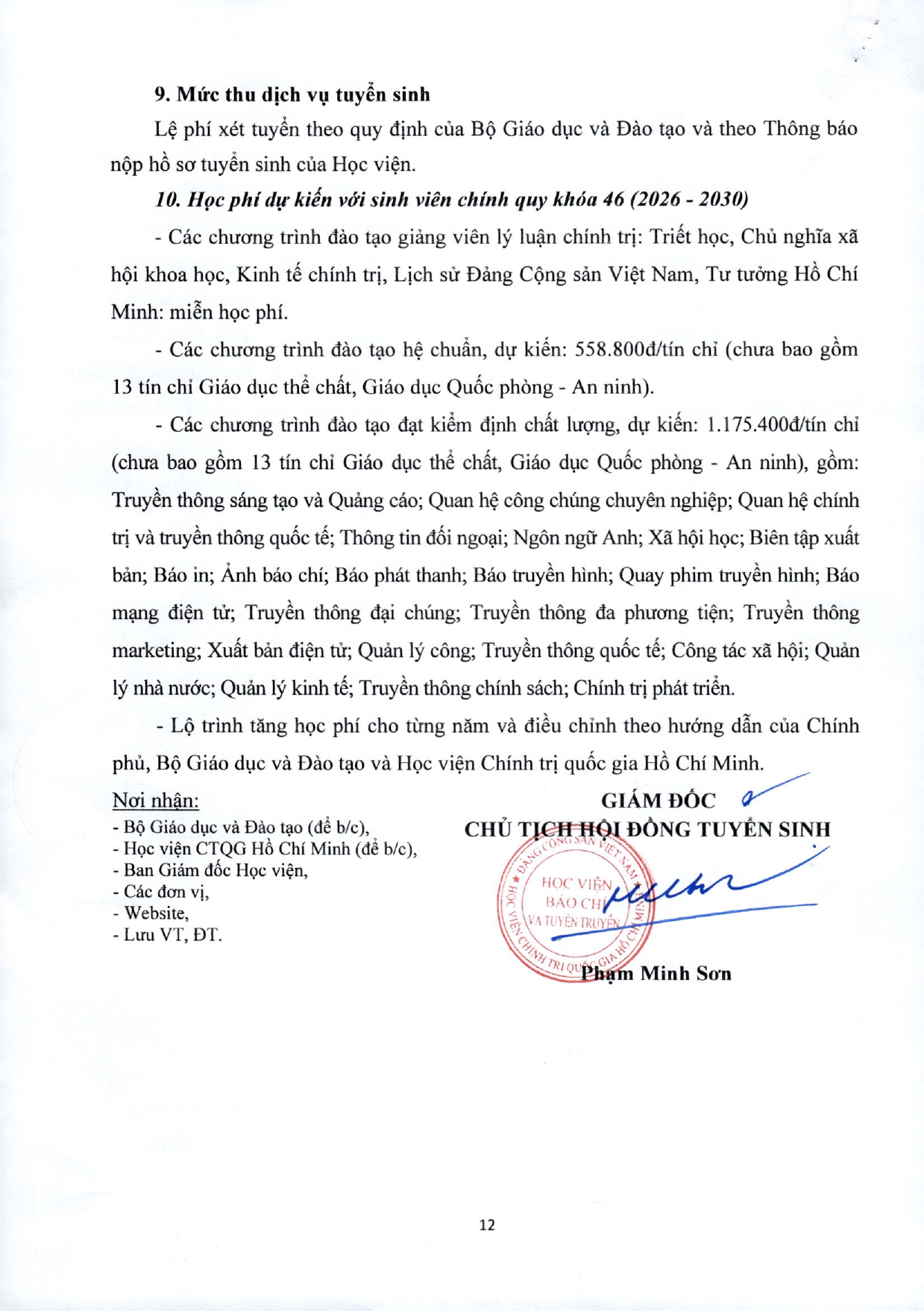 Hội đồng tuyển sinh đại học chính quy Học viện Báo chí và Tuyên truyền thông báo phương án tuyển sinh năm 2026 như sau: